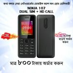 - Nokia 107 এ ২ সিম ও মেমোরী কার্ড সাপোর্টেড upto 2gb.