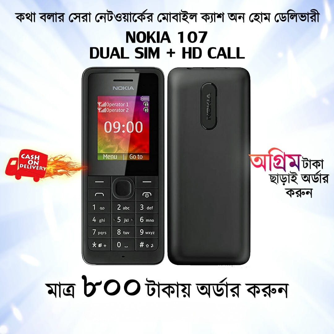 নোকিয়া ১০৭ দুই সিমের মোবাইল এবং এতে মেমোরী কার্ড ব্যবহার করা যায়। দেখতে সাধারন এবং অফিশিয়াল লুকস যে কাউকে মুগ্ধ করবে, স্মার্ট ও সিম্পল ডিজাইন এই মোবাইল এর।
